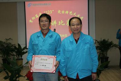 | ??????? 虎步奔騰開勝景,春風(fēng)浩蕩展鴻圖。為促進(jìn)公司各單位認(rèn)真領(lǐng)會集團(tuán)公司“3333”戰(zhàn)略和利達(dá)光電“123”戰(zhàn)略的深刻內(nèi)涵,進(jìn)一步激勵員工統(tǒng)一認(rèn)識,轉(zhuǎn)變觀念,增強信心,立足崗位,奮發(fā)有為,努力實現(xiàn)公司2010年經(jīng)營目標(biāo),3月26日晚上7點,利達(dá)光電黨總支在104#四樓培訓(xùn)室舉辦了“貫徹落實123,突出特色大發(fā)展”演講比賽。利達(dá)光電總經(jīng)理李智超和各單位員工代表一起來到演講比賽現(xiàn)場,聆聽我們利達(dá)員工春天的戰(zhàn)歌,給參賽選手們帶來了莫大的鼓勵和支持。在充滿激情的《學(xué)習(xí)123 踐行123》的詩朗誦中演講比賽拉開了帷幕。當(dāng)晚共有11名選手參加比賽,演講內(nèi)容以123戰(zhàn)略為指導(dǎo),緊密結(jié)合各單位工作實際和本職工作。選手們精彩的演講中飽含著激情,帶來了感動,大家盡情暢談了自己對123戰(zhàn)略的理解,彰顯了科技人員和基層員工、奮力拼搏、積極向上的良好精神風(fēng)貌。選手們以充實的內(nèi)容、優(yōu)美的語言和飽滿的感情贏得了評委和聽眾們的陣陣掌聲。 ??????? 來自精密薄膜工程部的李曉佳的演講內(nèi)容給大家內(nèi)心留下了很深的觸動。她給我們講述的是車間一名普通班長的故事,那是一個愛崗敬業(yè),無私奉獻(xiàn),值得尊敬的班長。為了干好自己的本職工作,盡職盡責(zé),加班加點,即使發(fā)燒也要堅持把工作保質(zhì)保量的完成。這是多么可貴的一種愛崗敬業(yè)的精神啊,敲動著我們內(nèi)心最深處的感動,讓我們內(nèi)心不禁對這樣一位班長肅然起敬。她是我們學(xué)習(xí)的榜樣,是愛崗敬業(yè),無私奉獻(xiàn)的榜樣。騰飛發(fā)展中的利達(dá)正是需要很多個這樣普通而又可敬的基層班長,帶領(lǐng)我們廣大員工用自己勤勞的雙手和智慧創(chuàng)造出一個又一個新的突破,譜寫一曲又一曲新的輝煌。 ??????? 在當(dāng)晚比賽中11位選手都激情澎湃,信心滿懷。平日里,他們都是在車間兢兢業(yè)業(yè)、默默的勞作,而今晚,他們變成了舞臺上的主角,各自在賽場上盡情揮灑才情,侃侃而談,在利達(dá)這片廣闊的天際里,自由地展翅翱翔。 ??????? 最終,投影事業(yè)本部獲得了此次演講比賽的組織獎。朱高磊獲得了一等獎。崔銀英、張文勇獲得了二等獎。李慧東、田冬梅,朱清濱獲得了三等獎。李曉佳、王芳、買靜、蘭勇、李文嘉獲得了比賽優(yōu)秀獎。 李總在會上講話,對此次演講比賽給予了很高的評價和肯定。李總認(rèn)為此次演講比賽舉辦的很成功,很有特色,包含了利達(dá)公司各個方面,還涉及到模具,電子,安全等等多方面全方位;各位選手演講內(nèi)容都是緊密結(jié)合自身工作實際,求真務(wù)實,立足本職工作崗位;參賽選手都來自基層,演講的內(nèi)容反映了公司的當(dāng)前現(xiàn)狀,代表了廣大員工的心聲。李總對選手們精彩的演講表示祝賀,并希望公司以后多多開展類似此類的活動,鼓舞士氣,展示利達(dá)員工昂揚的斗志和激情。同時李總對選手們也給予了殷切的希望,年輕的一代代表著公司發(fā)展的希望,充滿著朝氣與活力。李總鼓勵大家一定要扎實打好基礎(chǔ),健康成長,實現(xiàn)自身的可持續(xù)發(fā)展,在工作中創(chuàng)造出新的輝煌。 ??????? 下圖是現(xiàn)場剪影: |