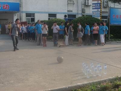 ??????? 活動(dòng)于下午4點(diǎn)30分在公司101號(hào)樓門前舉行。剛過4點(diǎn)各事業(yè)部經(jīng)過月末盤點(diǎn)、打掃完班組衛(wèi)生的員工就早早來到了比賽地點(diǎn),有的在討論本次比賽的規(guī)則,有的在討論戰(zhàn)術(shù),有的抓緊時(shí)間練習(xí)比賽的項(xiàng)目,比賽尚未開始,比賽競爭的氣氛已經(jīng)相當(dāng)濃厚。