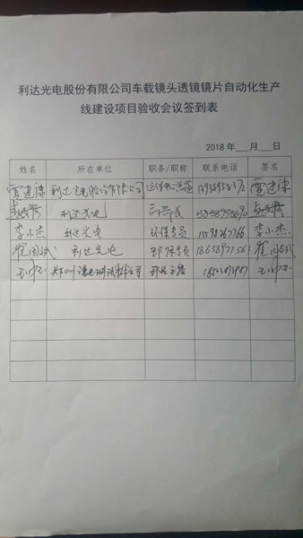 ??? 利達(dá)光電股份有限公司車載鏡頭透鏡鏡片自動化生產(chǎn)線建設(shè)項目竣工環(huán)境保護(hù)驗收意見