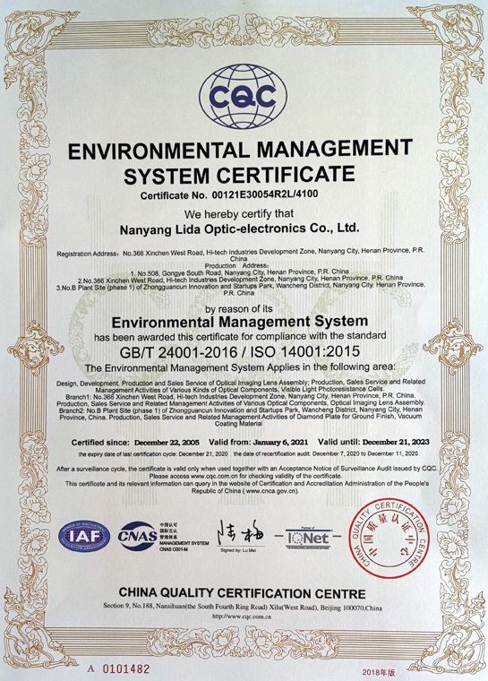 環(huán)境管理體系認(rèn)證證書(shū)(英文)